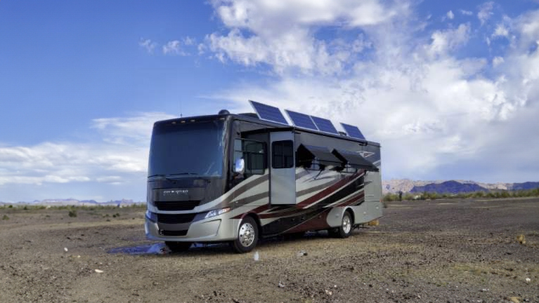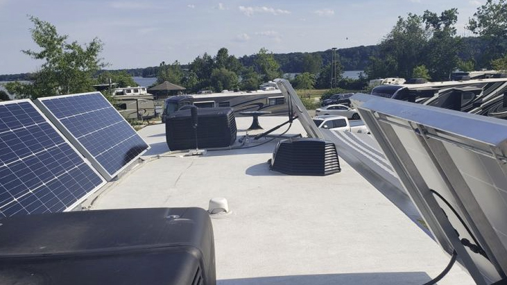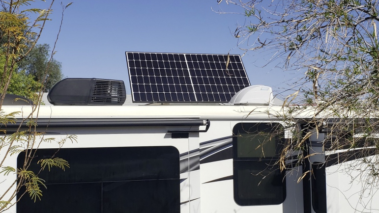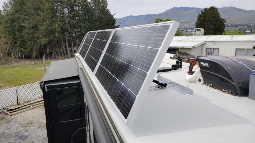 “My wife Cindy and I have been RVing for over 25 years. We’ve owned three different motorhomes, and each of them had solar panels. Only two of those RVs had ladders, and climbing onto their roofs and tilting our panels was no fun.